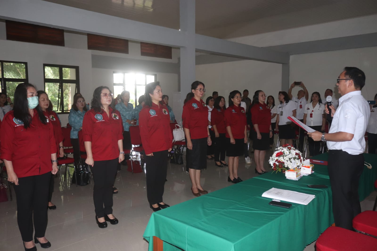 Hadir, Ketua TP-PKK Kota Tomohon drg. Jeand’arc Senduk-Karundeng, Sekertaris TP-PKK Kota Tomohon Eleonora Lumentut – Sangi, Sekertaris II TP-PKK Kota Tomohon Anna Liuw – Mongdong, S.H. , Sekretaris Daerah Kota Tomohon Edwin Roring, S.E., M.E. Kepala Dinas Kopersi Kota Tomohon Ir. Nova Siska Rompas serta Jajaran Pemerintah Kota Tomohon dan Seluruh Pengurus Koperasi yang Dilantik.