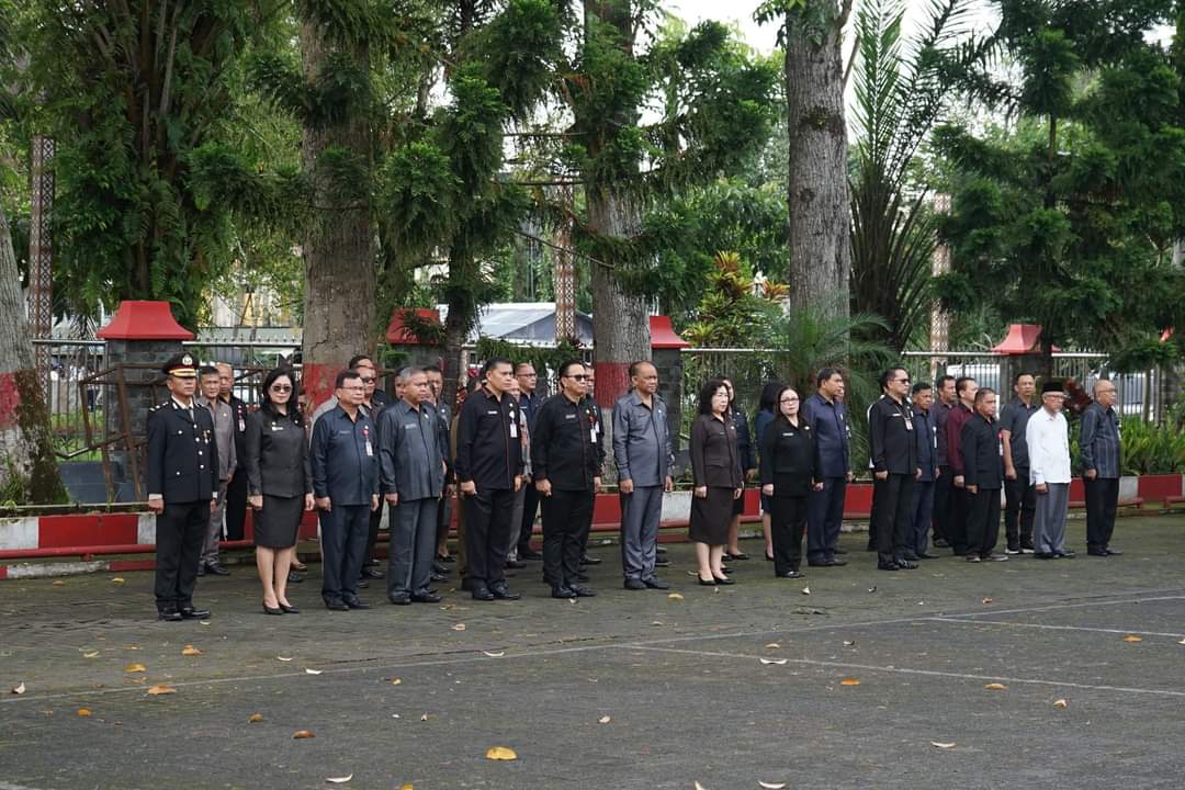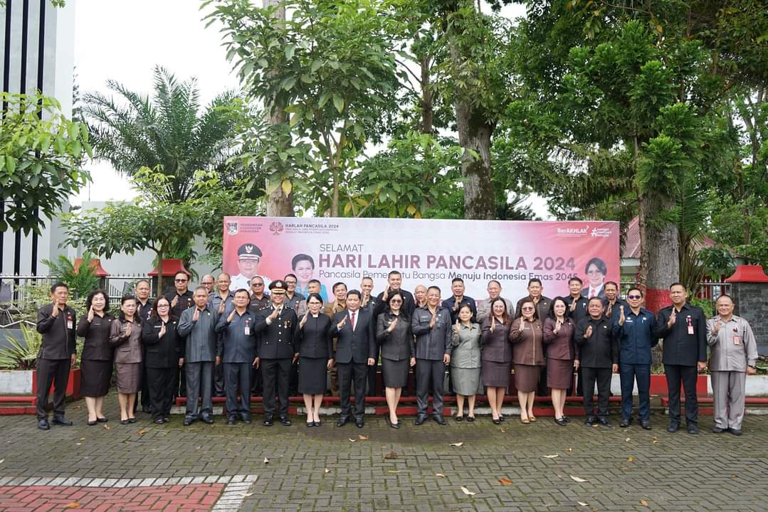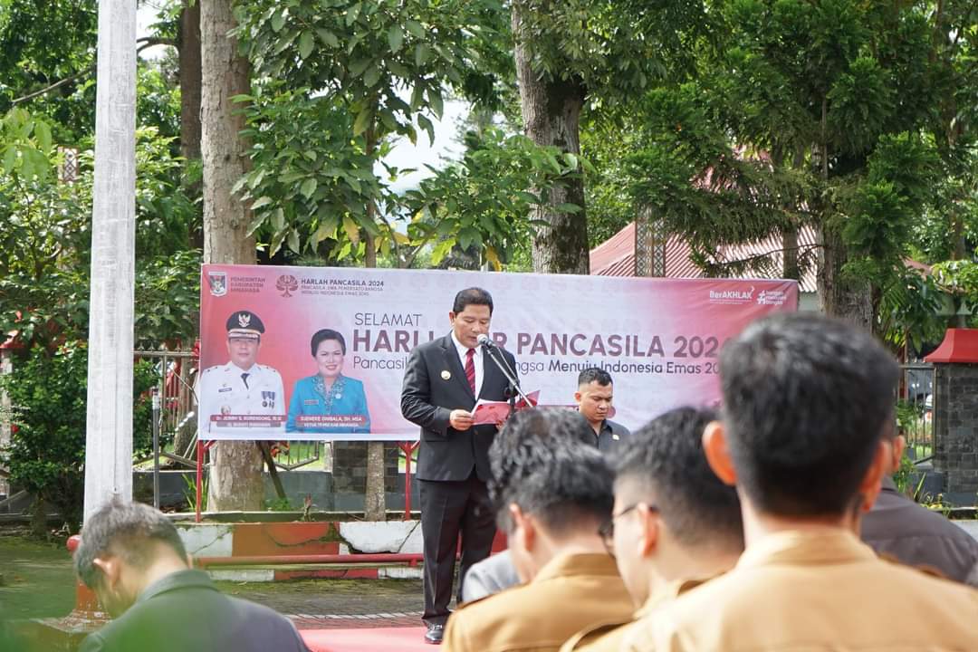 Pilarportal.com,Minahasa – Penjabat (Pj) Bupati Minahasa Dr Jemmy Stani Kumendong MSi inspektur upacara (Irup) peringatan Hari Lahir (Harlah) Pancasila. Upacara berlangsung di halaman kantor Bupati Minahasa, Sabtu (01/06/2024).