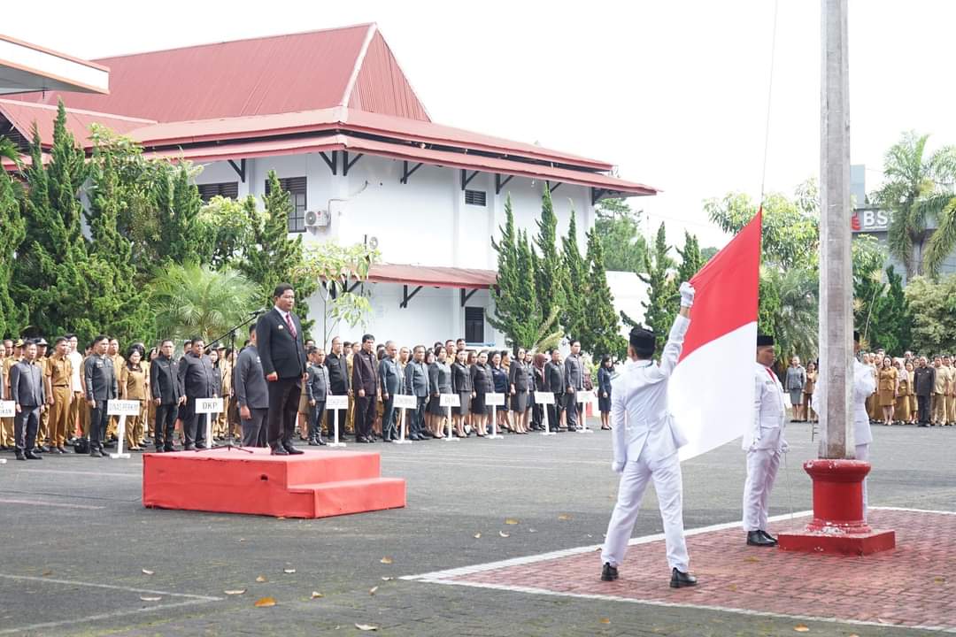 Pilarportal.com,Minahasa – Penjabat (Pj) Bupati Minahasa Dr Jemmy Stani Kumendong MSi inspektur upacara (Irup) peringatan Hari Lahir (Harlah) Pancasila. Upacara berlangsung di halaman kantor Bupati Minahasa, Sabtu (01/06/2024).