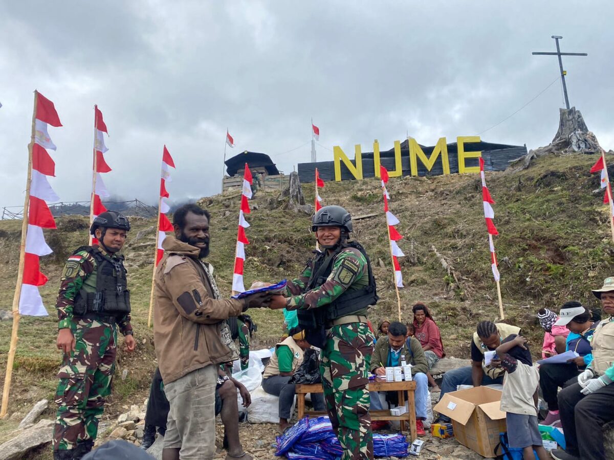 Pilarportal.com – Papua – Kegiatan pengobatan gratis bersama dilakukan kembali oleh Satgas Pamtas RI-PNG Kewilayahan Yonif R 712/Wiratama dari Pos Nume dengan Puskesmas Nioga (Jigonikme) bertempat di depan Pos Nume, Distrik Nume Kab. Puncak Jaya. (Sabtu, 01 Juli 2023).