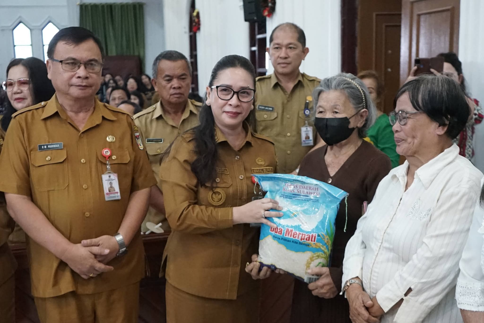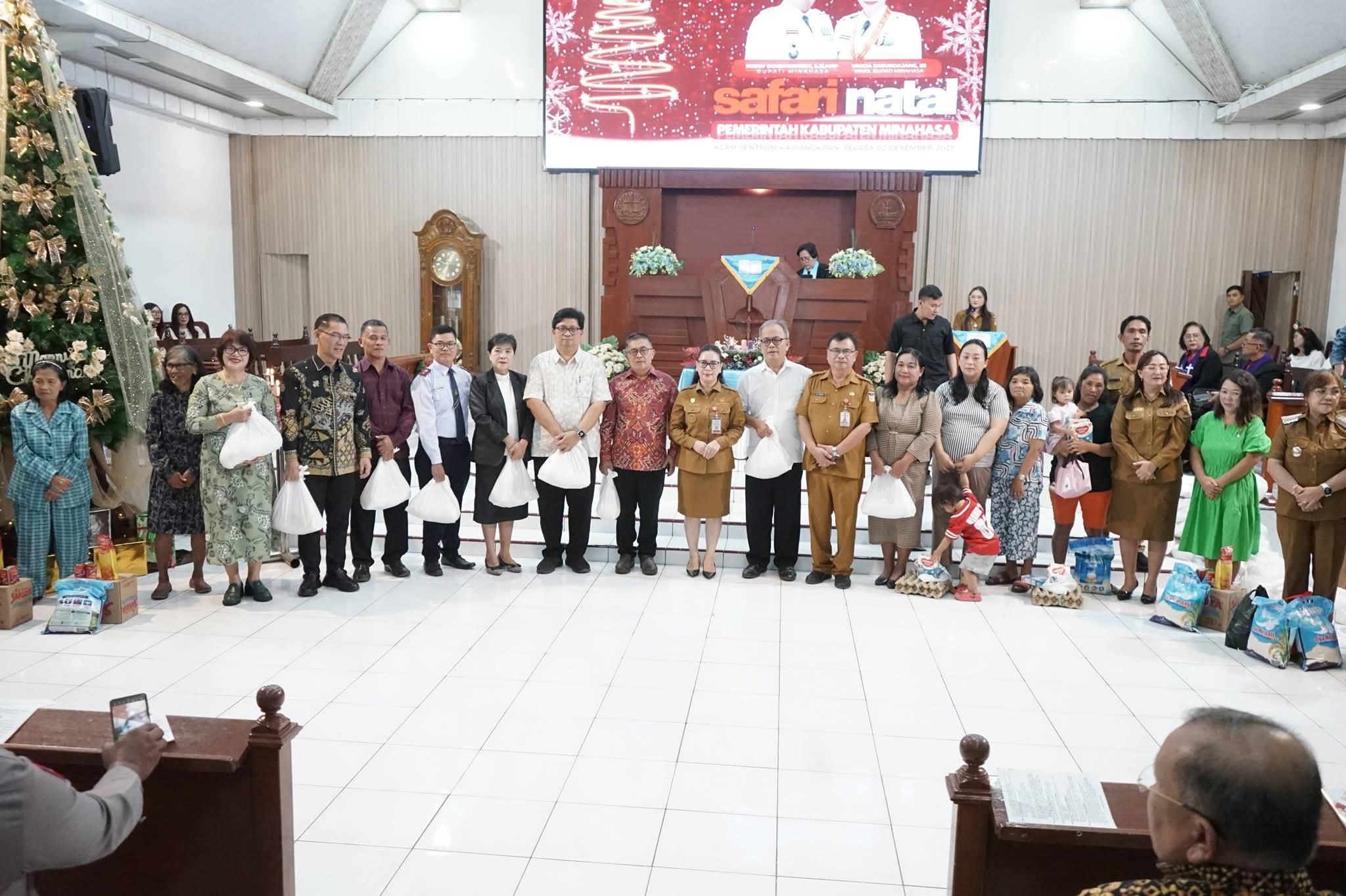 Wabup Vanda Sarundajang menjelaskan bahwa dalam rangkaian Safari Natal, Pemkab Minahasa menyalurkan bantuan diakonia kepada tokoh agama, warga kurang mampu, serta mereka yang membutuhkan, termasuk anak-anak stunting.