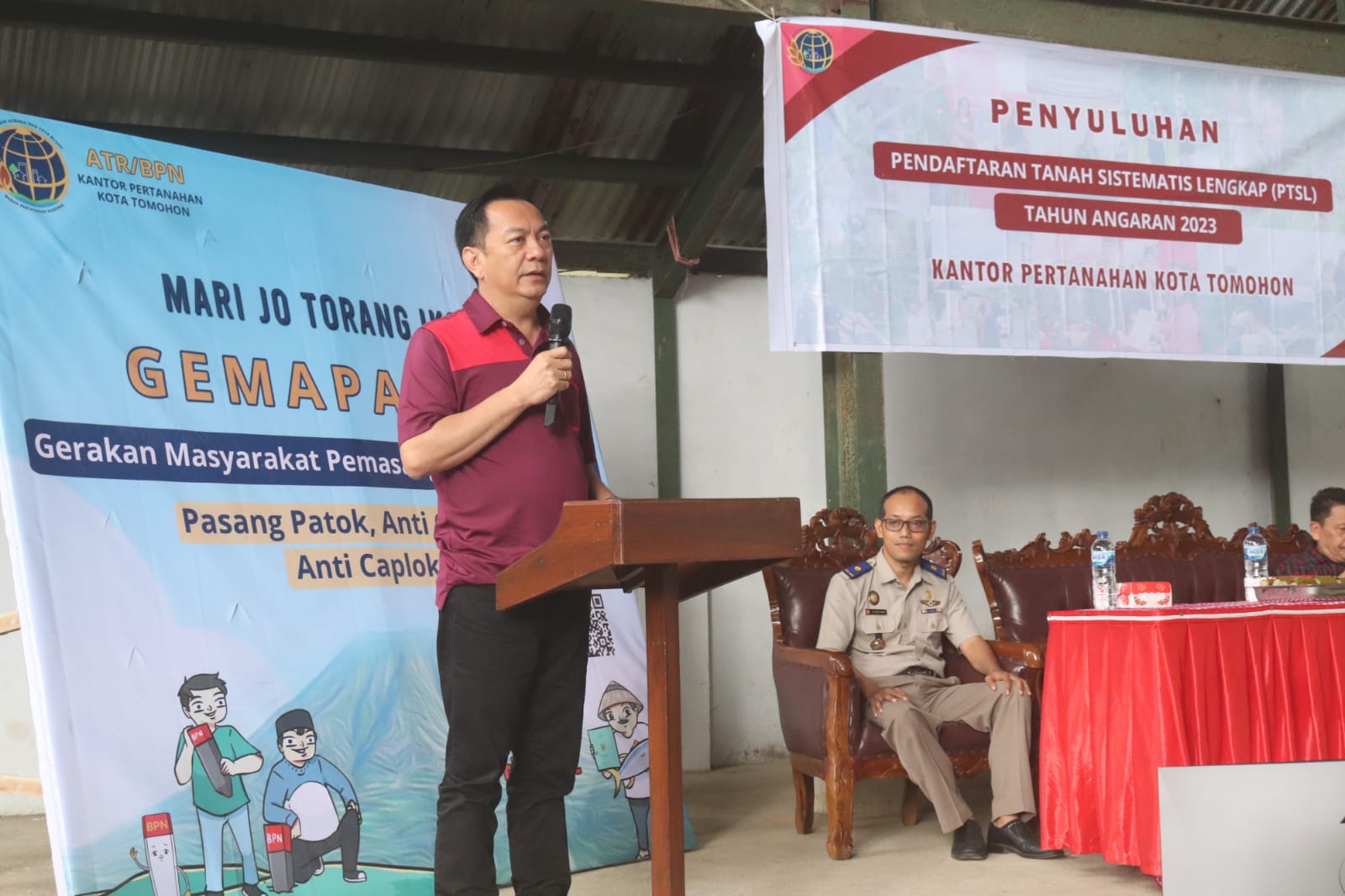 Walikota Tomohon menyampaikan Pencanangan gerakan masyarakat pemasangan tanda batas (GEMAPATAS) sebanyak 1 (satu) juta patok dilaksanakan secara serentak diseluruh indonesia. gemapatas merupakan gerakan yang dilakukan oleh masyarakat para pemilik tanah untuk memasang tanda batas tanah sesuai batas tanah yang dimilikinya. tujuan dari gemapatas ini yaitu untuk menggerakan dan meningkatkan kesadaran masyarakat dalam memasang dan menjaga batas tanah yang dimiliki karena dengan dipasangnya patok tanda batas oleh masing-masing pemilik tanah, diharapkan juga dapat meminimalisir konflik maupun sengketa batas tanah antar masyarakat.