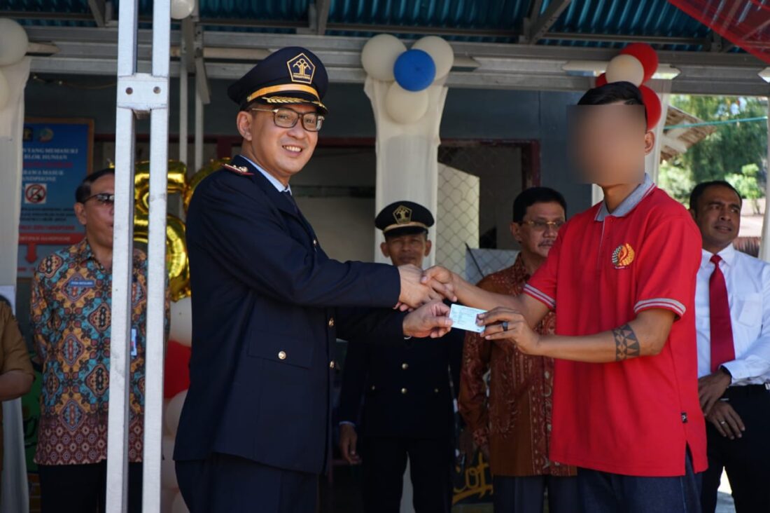 Pilarportal.com — Manado – Dalam rangkaian upacara puncak Hari Bakti Pemsyarakatan ke-59, Kantor Wilayah Kementerian Hukum dan HAM Sulawesi Utara yang melaksanakan upacara dari Lembaga Pemasyarakatan Kelas IIA Manado melanjutkan kegiatan dengan melakukan penyerahan KTP Elektronik bagi para WBP Lapas Manado, pemusnahan barang-barang terlarang hasil sidak juga peressmian Sarana Asimilasi dan Edukasi Lapas Manado, Selasa (02/05).