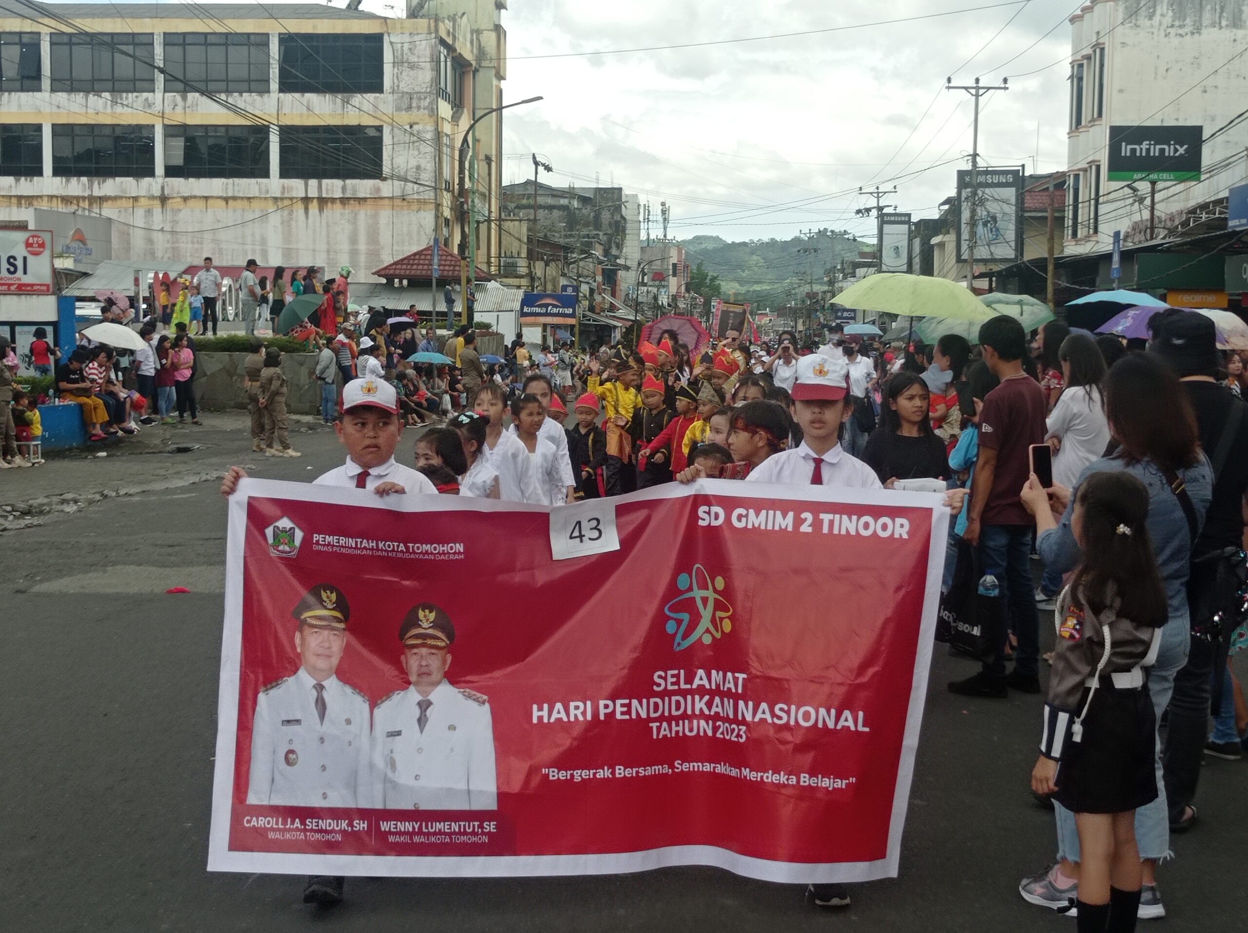 Pilarportal.com, Tomohon – Pawai Bocah Dalam Rangka Hari Pendidikan Nasional 2023 di Kota Tomohon. Dilaksanakan, Rabu 3 mei 2023. Diawali upacara di halaman SD Katolik Santa Clara Tomohon sekaligus titik start pawai.