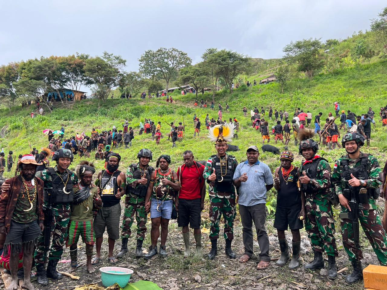 Pilarportal.com – Papua – Siang hari yang cerah dan berawan di Distrik Kalome Kabupaten Puncak Jaya, nampak banyak masyarakat dari berbagai wilayah pegunungan Papua berkumpul mengadakan pembukaan acara adat perdamaian antar kampung yang berselisih yaitu Kampung Kalome Atas dan Kalome Bawah, Rabu, (2/8/2023)