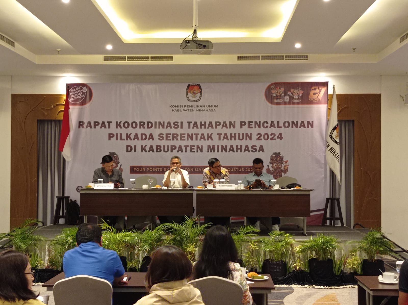 Pilarportal.com,Minahasa – Komisi Pemilihan Umum (KPU) Kabupaten Minahasa menggelar rapat koordinasi (Rakor) tahapan pencalonan, Bupati-Wakil Bupati Tahun 2024. Kegiatan berlangsung di salah satu Hotel, di kota Manado, Sabtu (3/8/2024).