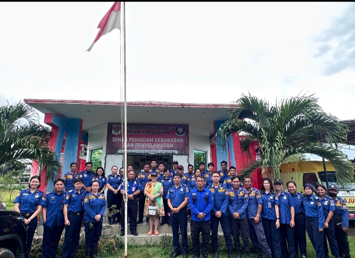 Komisaris Bank Sulut, Jaclyn Koloay, memberikan apresiasi langsung kepada Dinas Pemadam Kebakaran dan Penyelamatan Kabupaten Minahasa Selatan yang dipimpin oleh Kepala Dinas Nixon Mukuan S.Sos atas kesigapan dan ketanggapan tim dalam menangani musibah kebakaran yang terjadi di Desa Tawaang Timur.