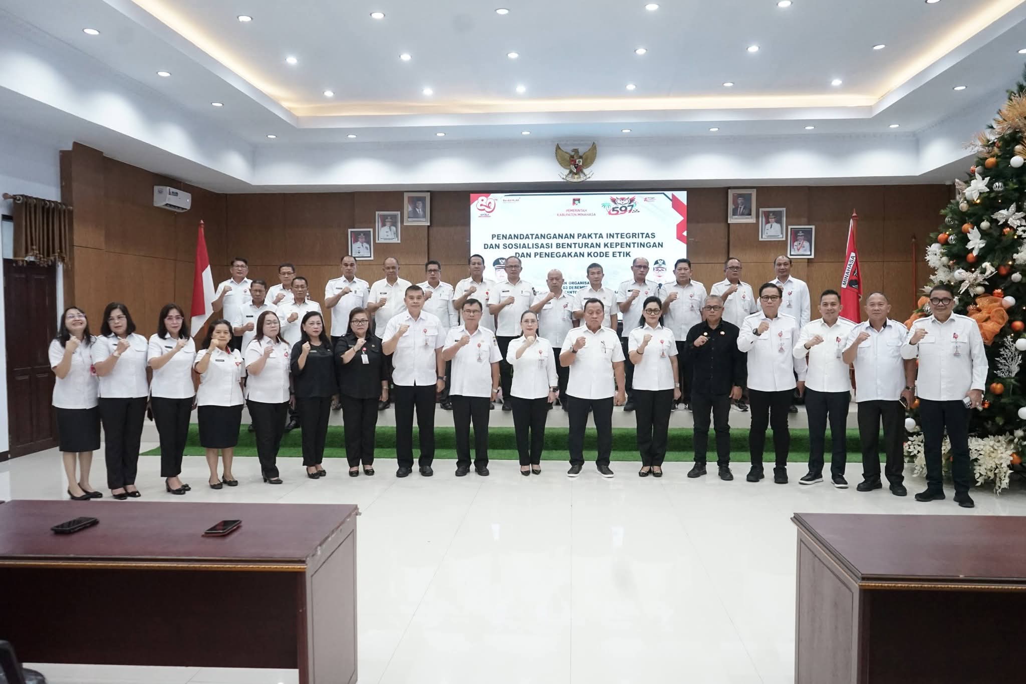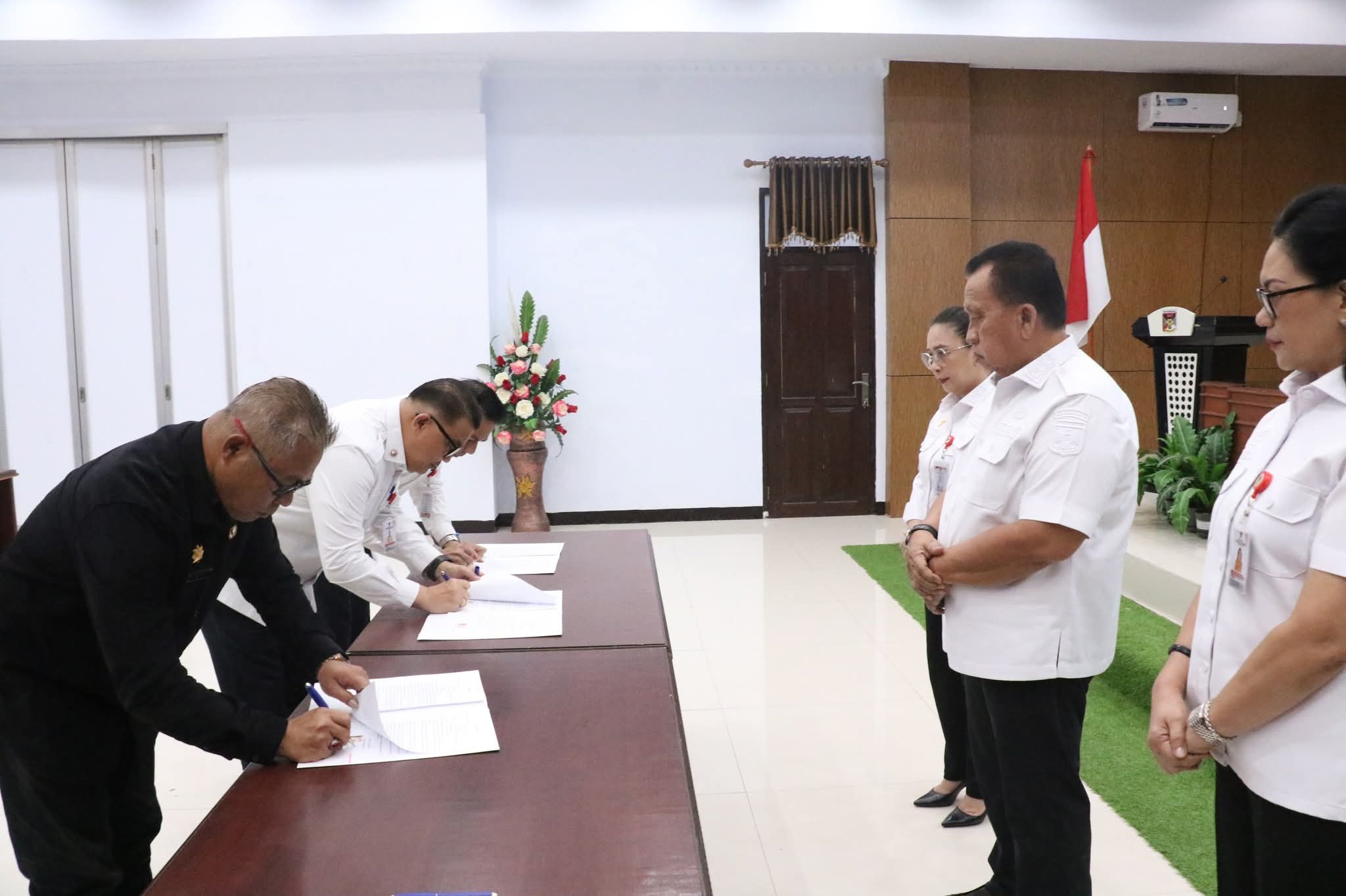 Penandatanganan komitmen antikorupsi ini digelar di Ruang Sidang Kantor Bupati, Rabu, (3/12/2025), dan disaksikan langsung oleh Bupati Robby Dondokambey dan Wakil Bupati Vanda Sarundajang.