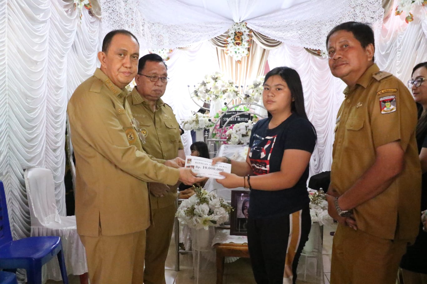 Pada kesempatan itu Bupati Menyampaikan Sambutan Penghiburan serta menyerahkan Bantuan Sosial Duka sebesar Rp. 10.000.000,- kepada Ahli Waris, Keluarga berduka