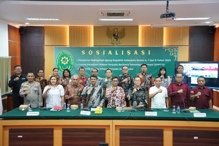 Pilarportal.com – Manado – Kepala Kantor Wilayah Kementerian Hukum dan HAM Sulawesi Utara Ronald Lumbuun melalui Kepala Divisi Pemasyarakatan Aris Munandar didampingi Kepala Bidang Pembinaan, Bimbingan, dan Teknologi Informasi Moh. Ilham Agung Setyawan mengikuti kegiatan sosialisasi Peraturan Mahkamah Agung (PERMA) No. 6, 7, dan 8 Tahun 2022, serta SPPT-TI dan e-Berpadu yang berlangsung di Ruang Sidang Utama Pengadilan Tinggi Manado. Kamis (04/07/2024)