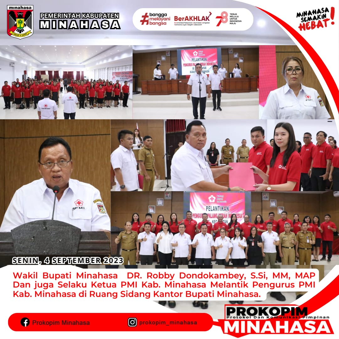 Pilarportal.com,Minahasa – Wakil Bupati Minahasa DR. Robby Dondokambey S.Si, MM, MAP dan juga selaku Ketua PMI Kab. Minahasa melantik pengurus PMI Kabupaten Minahasa, bertempat di Ruang Sidang Kantor Bupati Minahasa, Senin (04/09/2023).