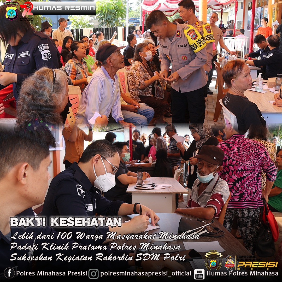 Pilarpirtal.com,Minahasa – Kepolisian Resor Polres Minahasa melaksanakan Bakti Kesehatan rangkaian Rakorbin SDM dan PNS Polri tahun 2023, bertempat di Klinik Pratama Polres Minahasa, Sabtu (04/11/2023).