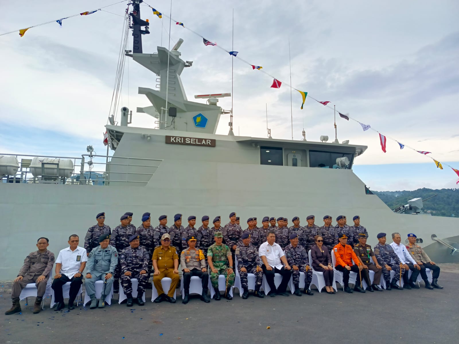 Pilarportal.com, Bitung – Panglima Komando Armada II (Pangkoarmada II) Ariantyo Condrowibowo menyerahkan kapal KRI Selar-879 kepada Komandan Pangkalan Utama TNI AL VIII (Danlantamal VIII) Laksamana Pertama TNI May Franky Pasuna Sihombing, CHRMP., di Dermaga Samuel Languyu Satrol Lantamal VIII Bitung, Senin (4/11/2024).