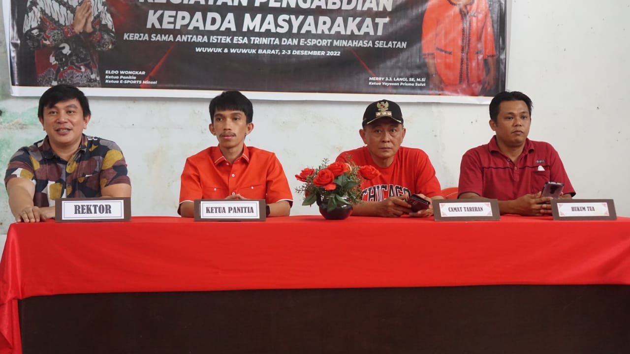 Pilarportal.com, Minsel – Ketua E-SPORT Minahasa Selatan Eldo Wongkar selaku Ketua Panitia Kegiatan Pengabdian Kepada Masyarakat menghadiri Kegiatan Pengabdian kepada masyarakat yang dilaksanakan Oleh Institut Sains & Teknologi Esa Trinita bekerja sama dengan E-SPORT Indonesia Kabupaten Minahasa Selatan yang bertempat di Desa Wuwuk dan Wuwuk Barat, Sabtu 02 Desember 2022.