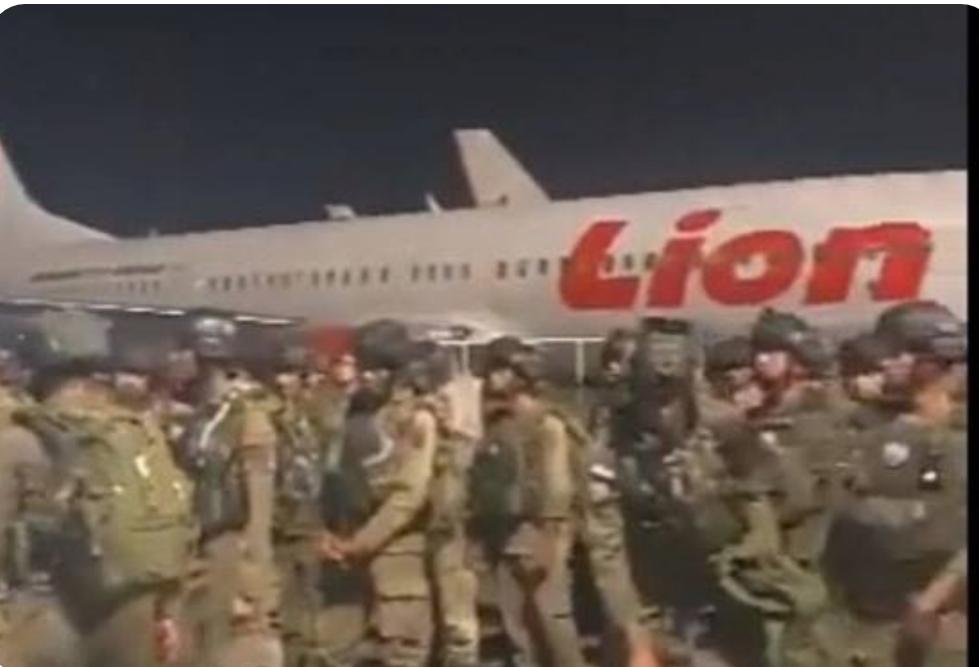 Sementara dalam video berdurasi 25 detik merekam puluhan tentara berbaris, dengan membawa tas. Mereka berada di dekat pesawat Lion, dengan kondisi waktu malam hari.