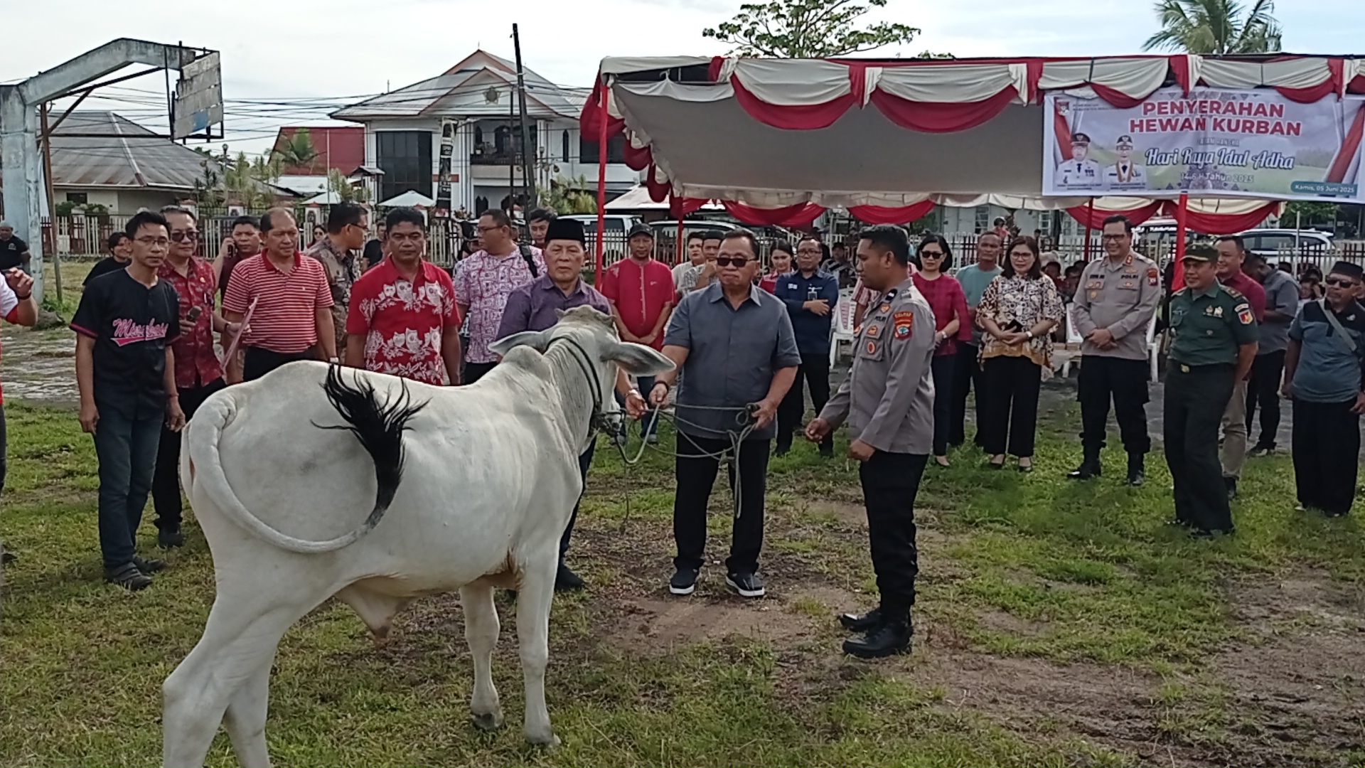 Pilarportal.com,Minahasa – Bupati Minahasa Robby Dondokambey S.Si, MAP, menyalurkan bantuan hewan kurban dalam rangka Hari Raya Idul Adha 1446 Hijriah/2025 Masehi di Lapangan Belakang Kantor Bupati Minahasa, Kelurahan Tounkuramber Kecamatan Tondano Barat. Kamis (5/6/2025).