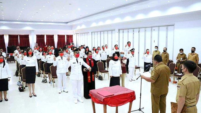 Pilarportal.com, Minahasa – Wakil Bupati Minahasa Robby Dondokambey SSi MM, mengambil sumpah dan melantik 40 Pejabat Administrator, Pengawas dan Jabatan Fungsional di Lingkup Pemerintah Kabupaten Minahasa, bertempat di Ruang Sidang Kantor Bupati. Selasa (04/0/10/2022) Tondano.
