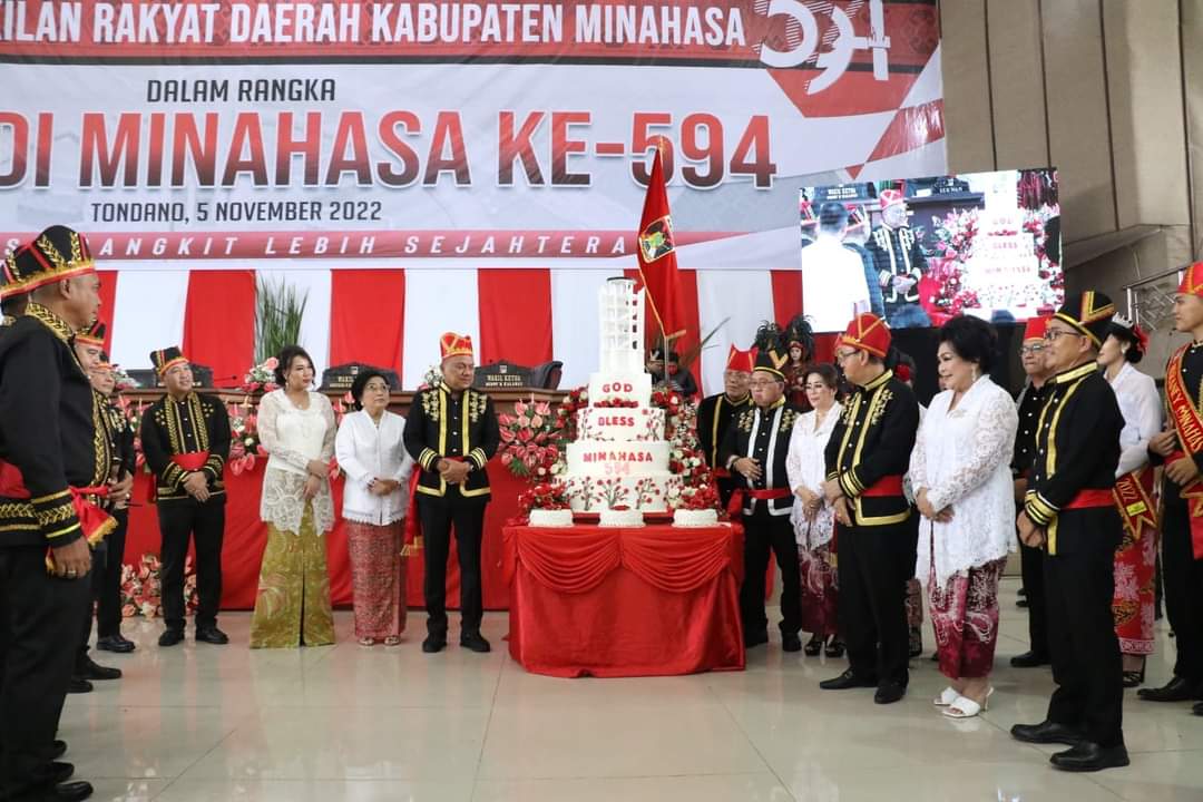 Pilarportal.com – Minahasa – Mengangkat tema Minahasa Bangkit Lebih Sejahtera, acara Perayaan HUT Minahasa bertempat di Wale Ne Tou Tondano, yang di dalamnya juga dilaksanakan rapat paripurna DPRD dan upacara pemberian gelar adat. Sabtu (05/11/2022).