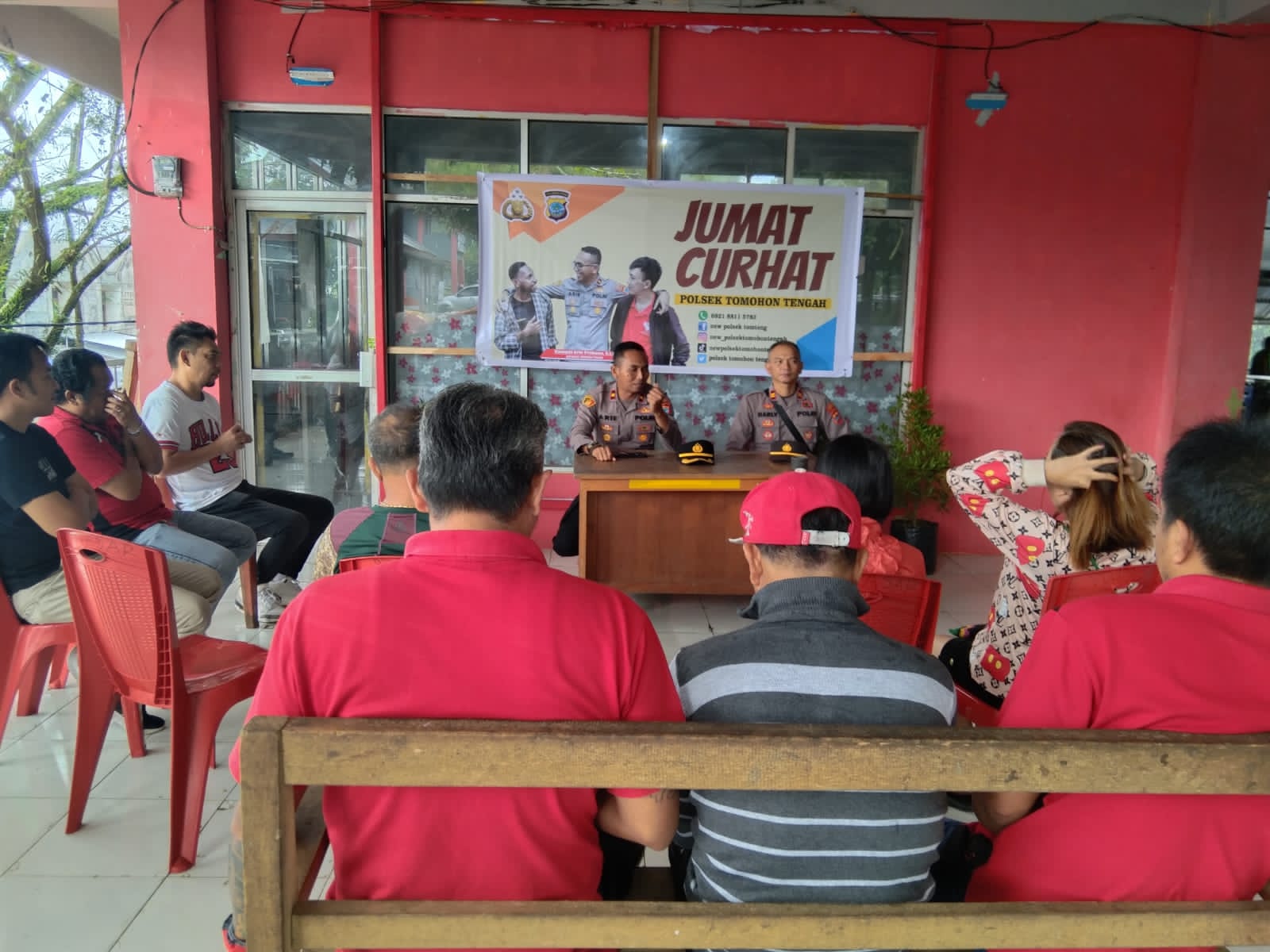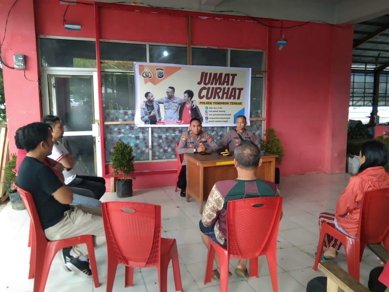 Pilarportal.com,Tomohon – Kepolisian Sektor (Polsek) Tomohon Tengah menggelar kegiatan dengan topik ‘Jum’at Curhat’ untuk mendengarkan keluhan masyarakat secara langsung, bertempat di Pasar Kilat Kelurahan Paslaten satu, Tomohon, Jum’at (6/01/2023).