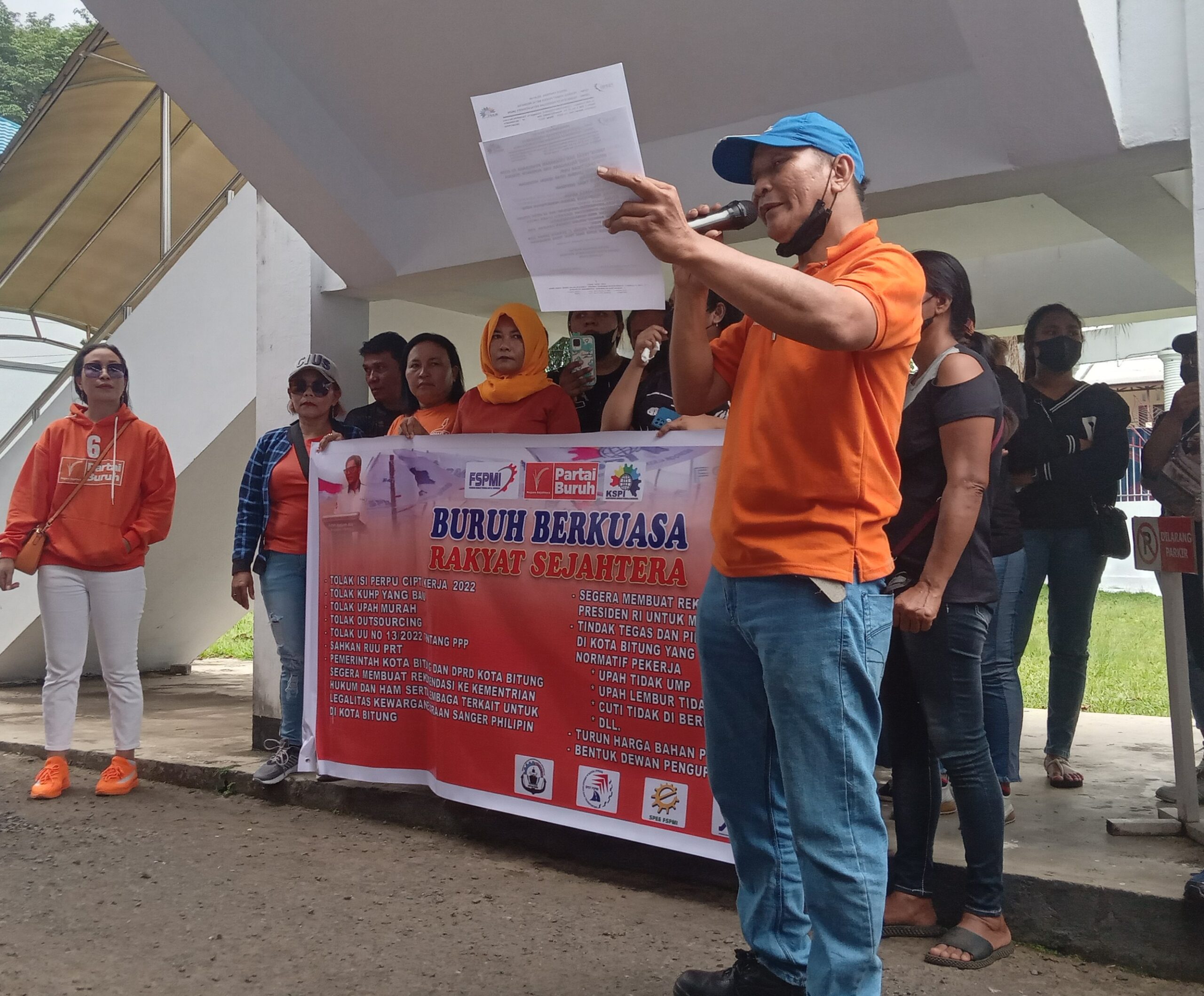 Pilarportal.com – Bitung – Aksi demo buruh yang tergabung dalam Federasi Serikat Pekerja Metal Indonesia (FSPI) Federation Of Indonesian Metalworker’ Union (FIMWU) bersama para pekerja sopir dumtrek mendatangi Gedung DPRD kota bitung Senin (06/02/2023), berlangsung tertib.