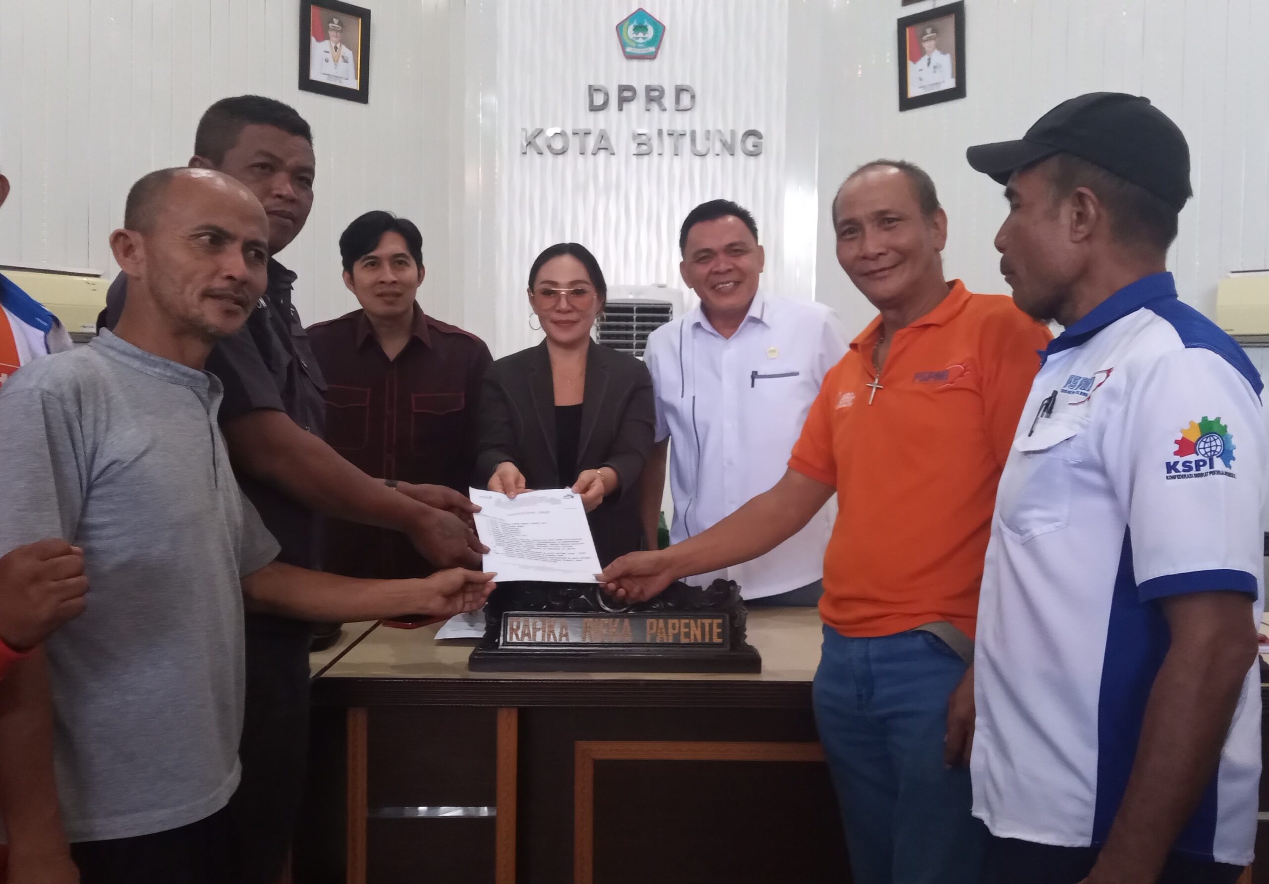 Setelah beberapa jam melakukan orasi di depan kantor DPRD Kota Bitung para buru langsung di terima masuk bersama untuk melakukan aspirasi mereka.