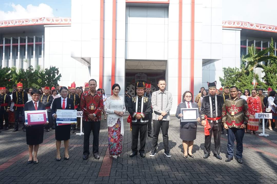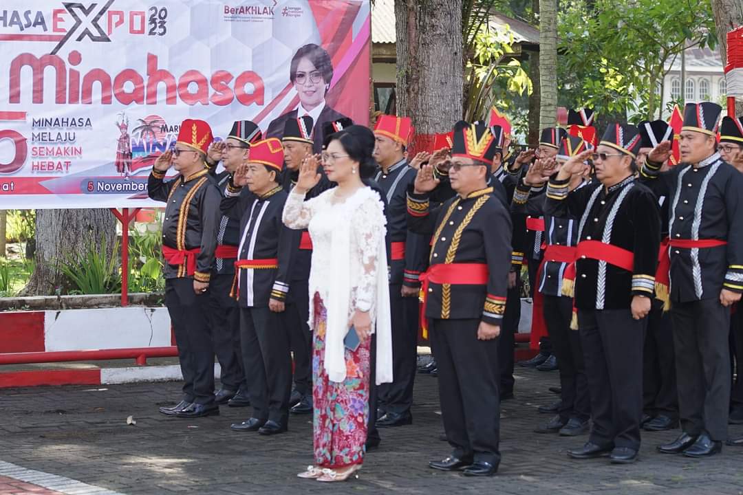 Upacara ini dihadiri seluruh Organisasi Perangkat Derah (OPD) dan jajaran Pemerintah Kabupaten Minahasa, dengan mengunakan pakaian adat Minahasa. (DRO)