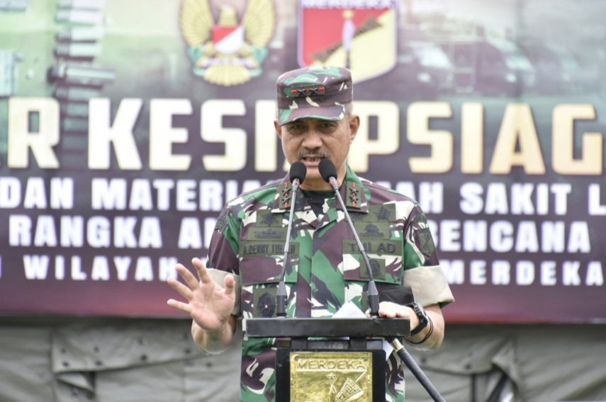“Demikian sambutan Pangdam XIII/Merdeka Mayjen TNI A. Denny Tuejeh saat Gelar Kesiapsiagaan Personel Dan Materil Rumah Sakit Lapangan Kesdam XIII/Merdeka dalam mengantisipasi bencana alam, dilapangan Gajah Mada Pomdam XIII/Merdeka, Selasa (6/12/2022).