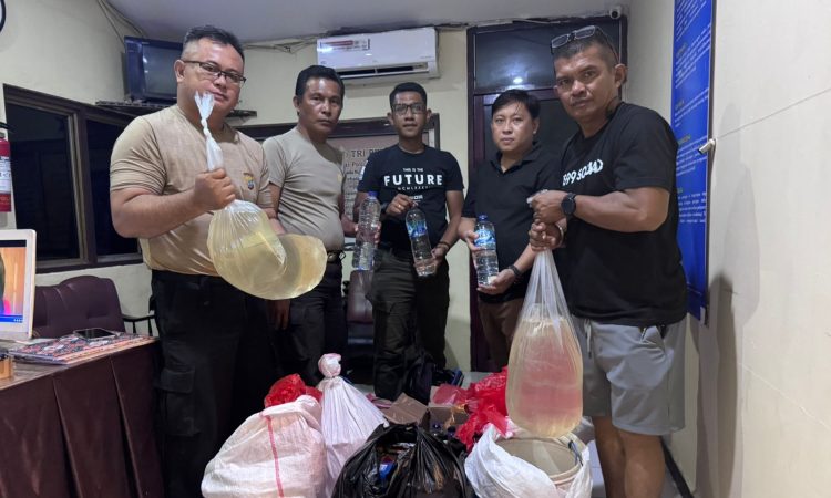 Dalam pemeriksaan ini, personel Polsek Pelabuhan Manado berhasil menemukan sejumlah besar minuman keras jenis Cap Tikus yang disembunyikan dalam berbagai kemasan. Barang bukti yang diamankan meliputi satu gelon berisi 25 liter, dua dus masing-masing berisi 12 dan 10 botol Aqua 1500 ml, satu ransel berisi 12,5 liter, serta empat ember tahu berisi 12,5 liter Cap Tikus di setiap ember, dengan total keseluruhan mencapai 119,5 liter.