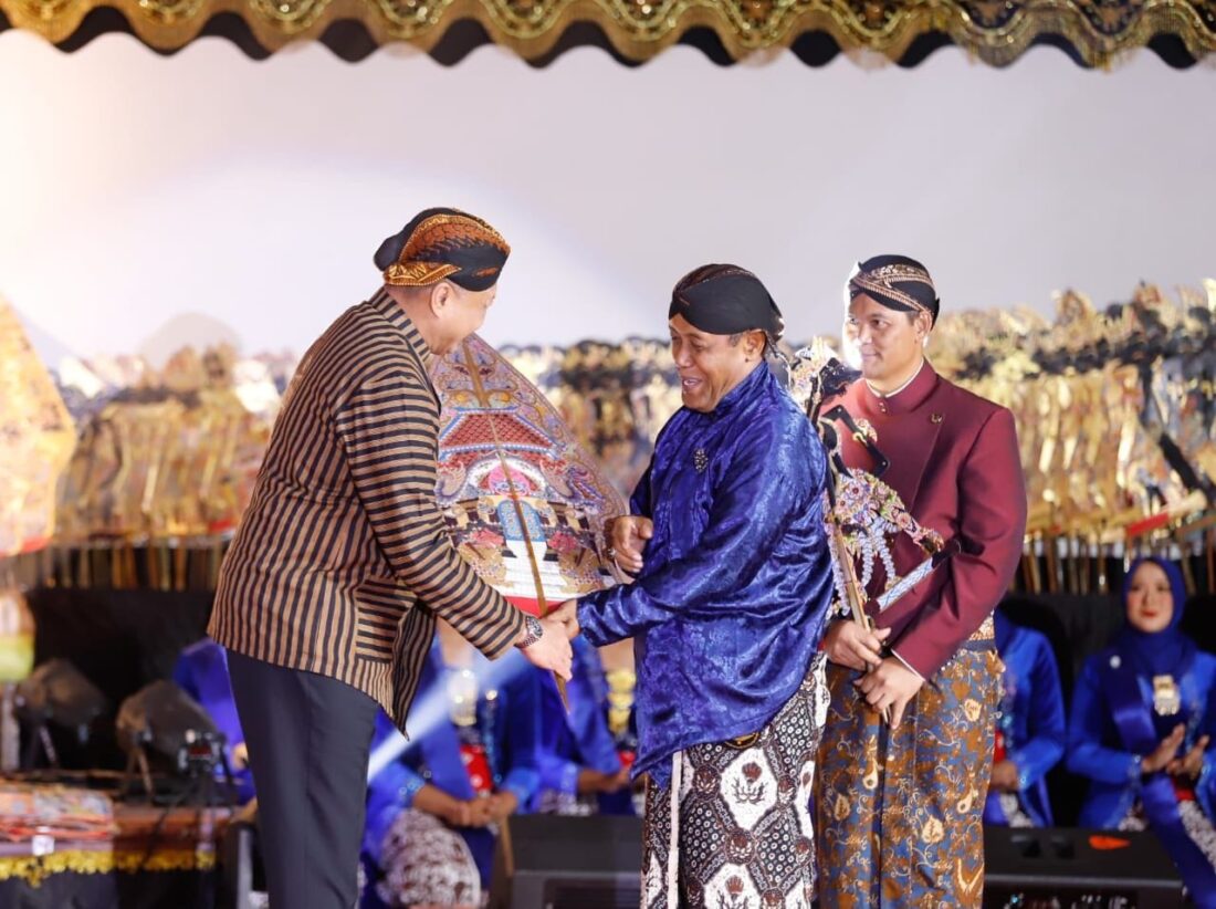 Sebelum pementasan, Kasau menyerahkan gunungan kepada dalang Marsdya TNI (Purn) Bambang Sulistyo, dan tokoh wayang Gatotkaca kepada dalang Kolonel Pnb Urip Widodo.