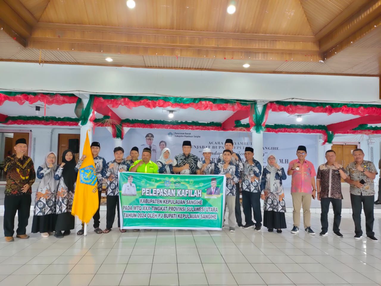 Sangihe-Pilarportal.com-Penjabat (Pj) Bupati Kabupaten Kepulauan Sangihe Albert Huppy Wounde secara resmi melepas Sebanyak 22 peserta Tim Musabaqah Tilawatil Qur’an (MTQ) beserta 6 orang pendamping yang akan mengikuti kegiatan tingkat Provinsi Sulawesi Utara di Kota Kotamobagu di lepas secara resmi oleh Penjabat Bupati Kepulauan Sangihe Albert Huppy Wounde.
