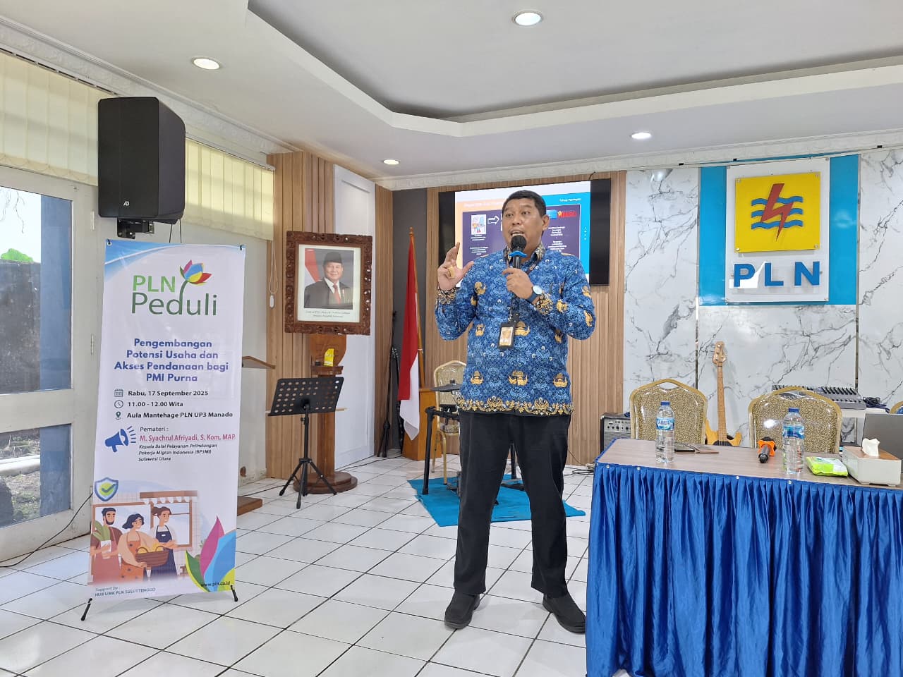 Kegiatan yang berlangsung di Aula Mantehage, PLNUP3 Manado, ini diikuti oleh puluhan peserta yang merupakan PMI aktif dan PMI purna sekaligus pelaku UMKM binaan PLN.