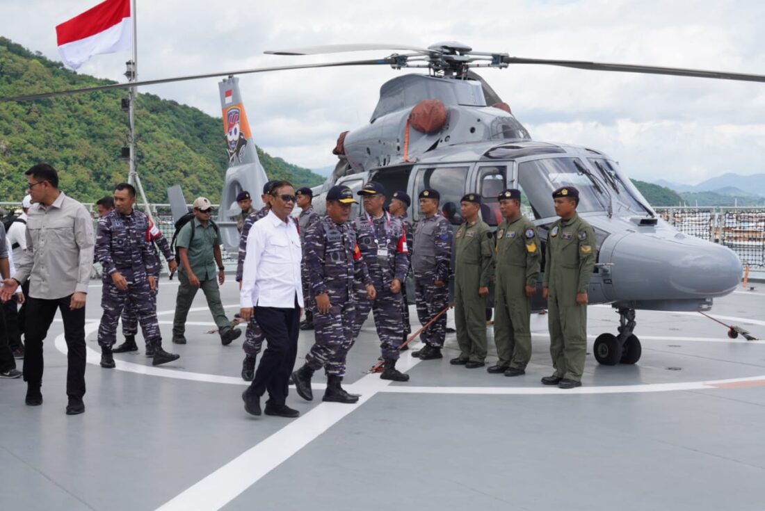 Pilarportal.com — NTT – Menteri Koordinator Bidang Politik, Hukum, dan Keamanan RI (Menkopolhukam RI) Prof. Dr. Mohammad Mahfud MD, S.H., S.U., M.I.P., didampingi Pangkoarmada II Laksda TNI Maman Firmansyah, mengunjungi kapal rumah sakit KRI dr. Wahidin Sudirohusodo-991 (WSH-991) di Labuan Bajo, NTT, Senin (8/5/2023).