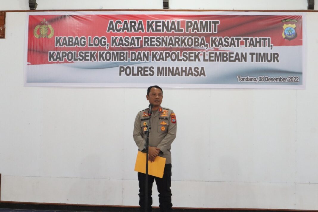 Kapolres Minahasa dalam amanatnya mengucapkan selamat bertugas di Polres Minahasa bagi pejabat baru.