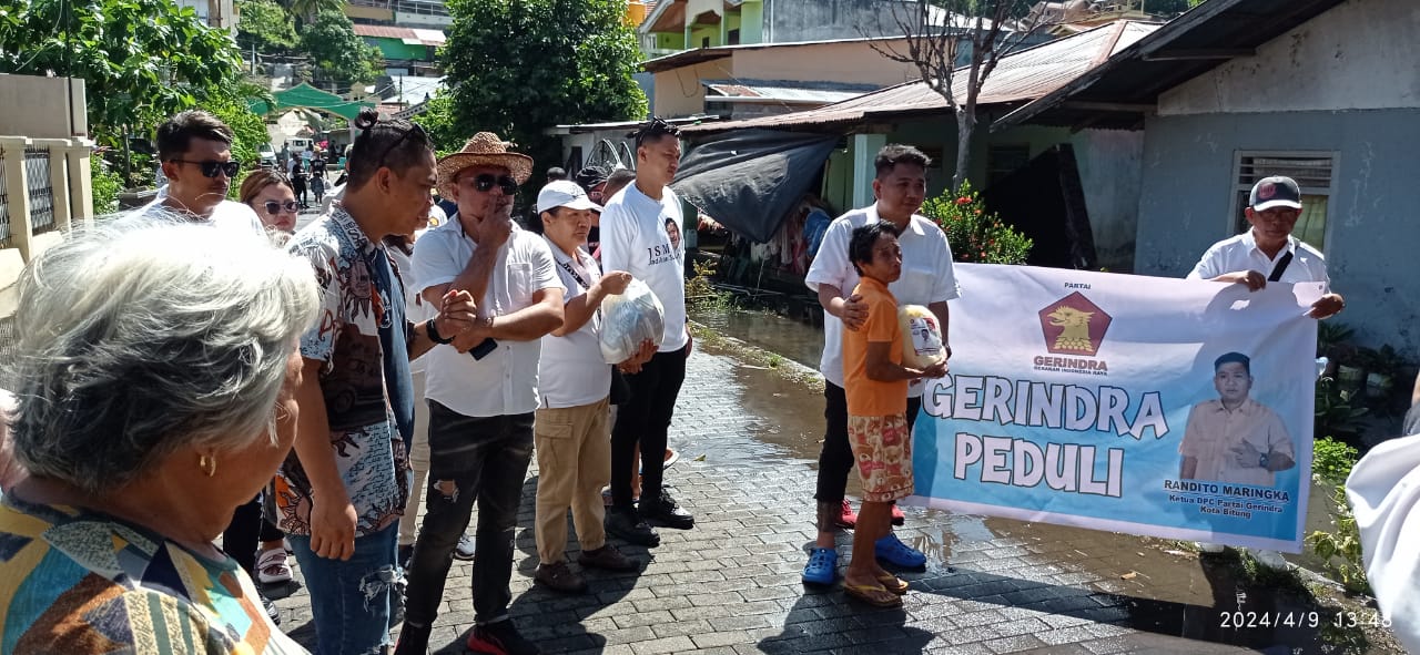 Pilarportal.com,Bitung – Ketua Partai Gerindra DPC Kota Bitung Randito Maringka yang merupakan calon legislatif dari dapil 4 Aertembaga Lembeh beserta jajaran pengurus menyambangi korban banjir bandang dan longsor di Kelurahan Pateten Dua Kecamatan Aertembaga dan Kelurahan Mawali, Kecamatan Lembeh Utara, Selasa (09/04/2024).
