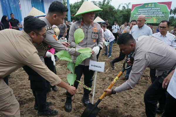 Penanaman jagung dipusatkan di Lahan Perhutanan Sosial, di Desa Laikit, Kecamatan Dimembe, Kabupaten Minahasa Utara, Rabu (9/7/2025), dihadiri oleh Kapolda Sulut Irjen Pol Roycke Harry Langie, Wakapolda Brigjen Pol Awi Setiyono, Forkopimda, para PJU Polda, Kapolres Minut dan Bhayangkari.