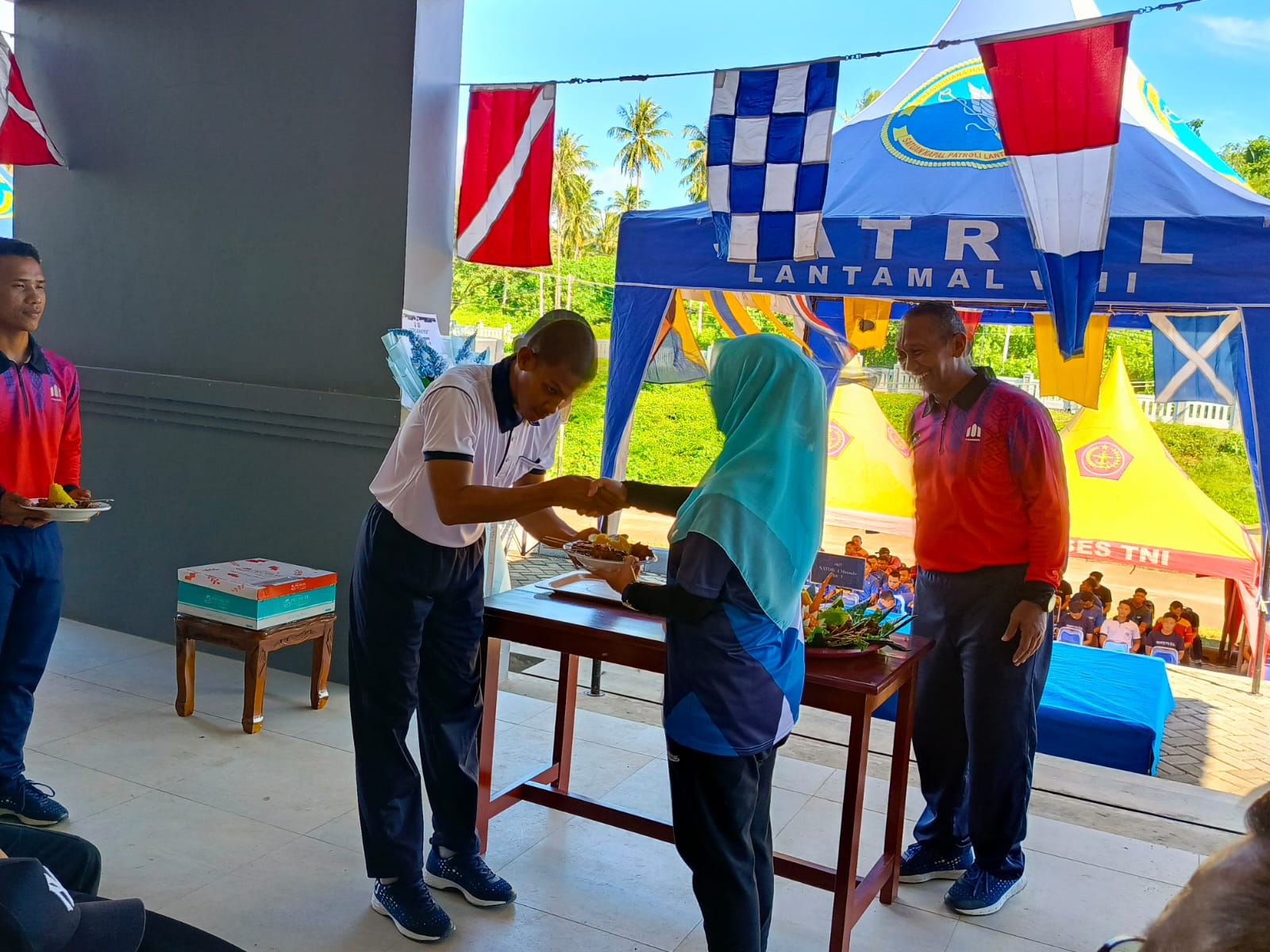 Turut hadir,Kolonel Laut (P) Shodikin, M.Tr. Opsla (Dansatrol Lantamal VIII), Letkol Marinir Aditya Indarto, M. Tr. Hanla (Danyonmarhanlan VIII Bitung).Letkol Laut (KH/W) Cortje Kumampung S.T (Paban Spers Guskamla Koarmada II),Letkol Laut PM Kusnadi S.Pd (Danpomal Lantamal VIII), Para Kasatker Lantamal VIII, Letkol bakamla Andriansyah Husain (Mewakili Ka Zona Tengah)