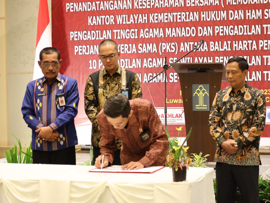 “Selamat datang di Kota Manado, di Bumi Nyiur Melambai. Semoga dengan adanya kegiatan ini dapat menyosialisasikan tugas dan fungsi Balai Harta Peninggalan serta mempererat kerjasama antara Kementerian Hukum dan HAM dengan Pengadilan Tinggi Agama,” jelas Ronald Lumbuun.