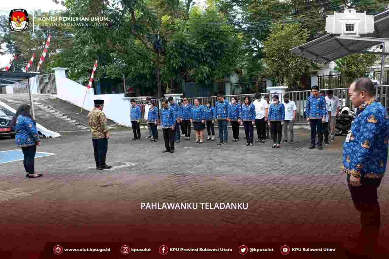 Pilarportal.com – Manado – KPU Provinsi Sulawesi Utara melaksanakan upacara peringatan Hari Pahlawan ke 77 Tahun 2022 dengan tema Pahlawanku Telandanku bertempat di Kantor KPU Provinsi Sulawesi Utara, Kamis 10 November 2022.