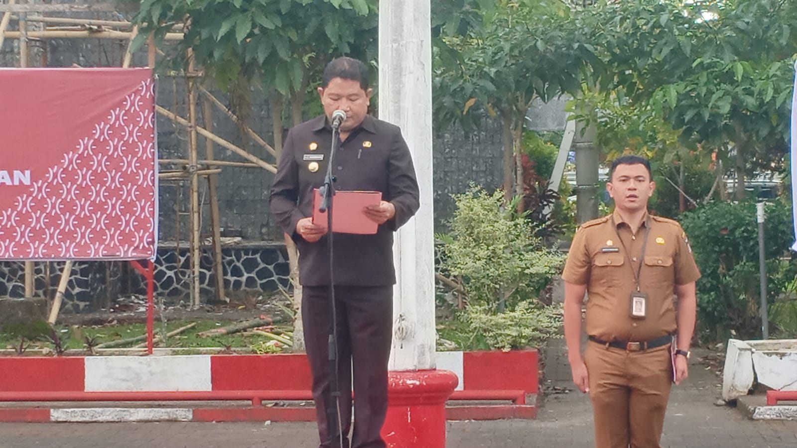 Turut hadir Forkopimda Minahasa, Para Asisten, Staf Ahli, Pejabat Eselon II, Para Camat, Siswa SMA, serta ASN dan THL Jajaran Pemkab Minahasa. (DRO)