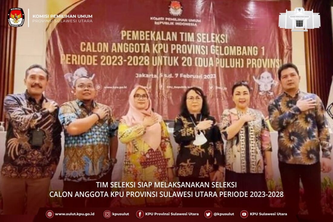 Pilarportal.com – Manado – Berdasarkan Keputusan KPU Nomor 47 Tahun 2023 tentang Penetapan Keanggotaan Tim Seleksi Calon Anggota KPU Provinsi diantaranya Sulawesi Utara yaitu: 1. Joyce Jacinta Rares; 2. Livie Moudy Allow, Rahmat Hanna, Rinni Pakaya dan Viktory Rotty.