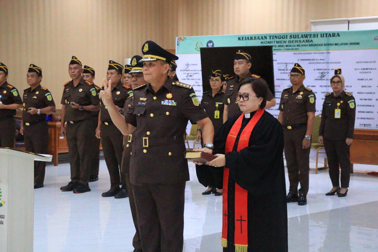 Pilarportal.com, Manado – Kajati, Kepala Kejaksaan Tinggi Sulawesi Utara, Dr. Andi Muhammad Taufik, S.H.,M.H., CGCAE., melantik Kolonel Laut (KH) Fredie Alexander Tamara, SH., MH. sebagai Asisten Tindak Pidana Militer (Aspidmil) Kejati Sulut pada hari Selasa, 11 Maret 2025 di Aula Sam Ratulangi.