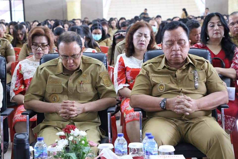 Pilarportal.com,Minahasa – Bupati Minahasa Dr. Ir. Royke Octavian Roring, M.Si, dan Wakil Bupati Robby Dondokambey bersama Jajaran Pemkab menghadiri ibadah Paskah bersama. bertempat di Gedung Wale Ne Tou Tondano, Selasa (11/4/2023).