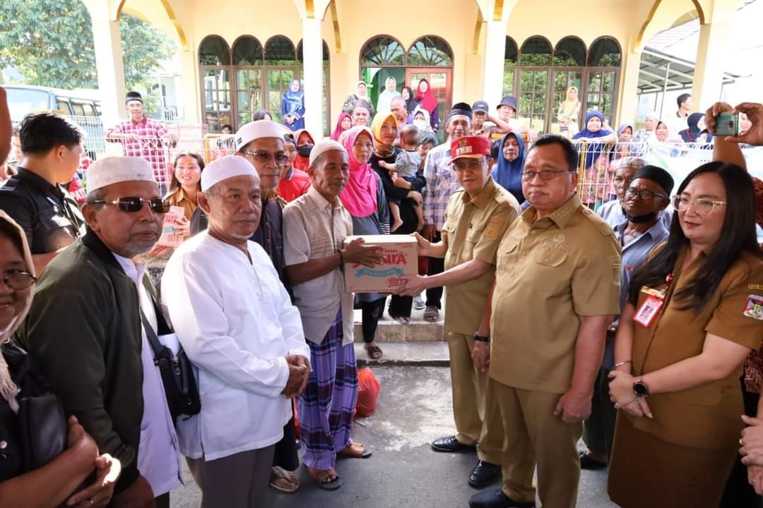 Pilarportal.com,Minahasa – Bupati Minahasa Dr. Ir. Royke Octavian Roring, M,Si dan Wakil Bupati Robby Dondokambey, menyerahkan bantuan paket bahan pokok (bapok) kepada kaum dhuafa Lanjut Usia (Lansia) bertempat di Halaman Masjid Imam Bondjol Desa Lotta Kecamatan Pineleng, Selasa (11/04/2023).