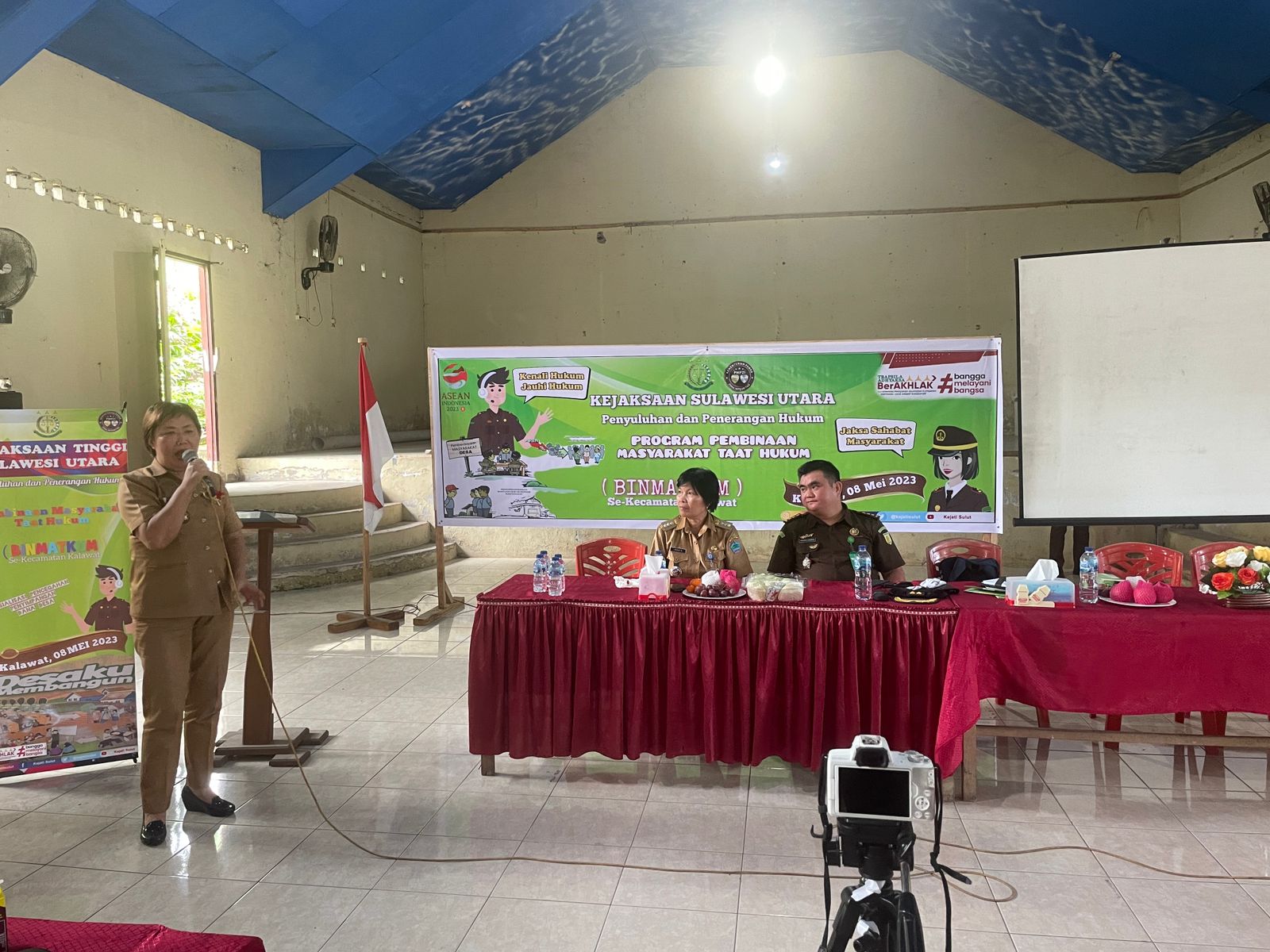 Theodorus Rumampuk, SH.MH selaku Kasi Penkum Kejati Sulut atas nama pimpinan Bapak Kajati Sulut Dr. Andi Muhammad Taufik, SH.MH. CGCAE dan Bapak Asisten Intelijen Marthen Tandi, SH.MH menyampaikan terima kasih kepada pemerintah Kecamatan Kalawat yang telah memfasilitasi sehingga kegiatan ini boleh terlaksana. Demikian pula halnya Camat Kalawat