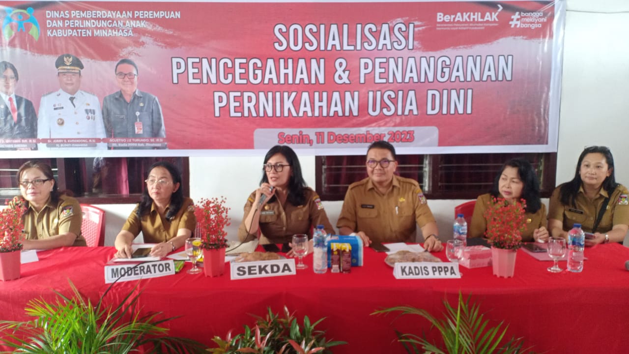 Pilarportal.com,Minahasa – Sekretaris Daerah Kabupaten Minahasa Dr. Lynda D. Watania MM, MSi, membuka sekaligus pembicara dalam kegiatan Sosialisasi Pencegahan dan Penanganan Pernikahan Usia Dini, Senin (11/12/2023), bertempat di Kantor Dinas Pemberdayaan Perempuan dan Perlindungan Anak (P3A).
