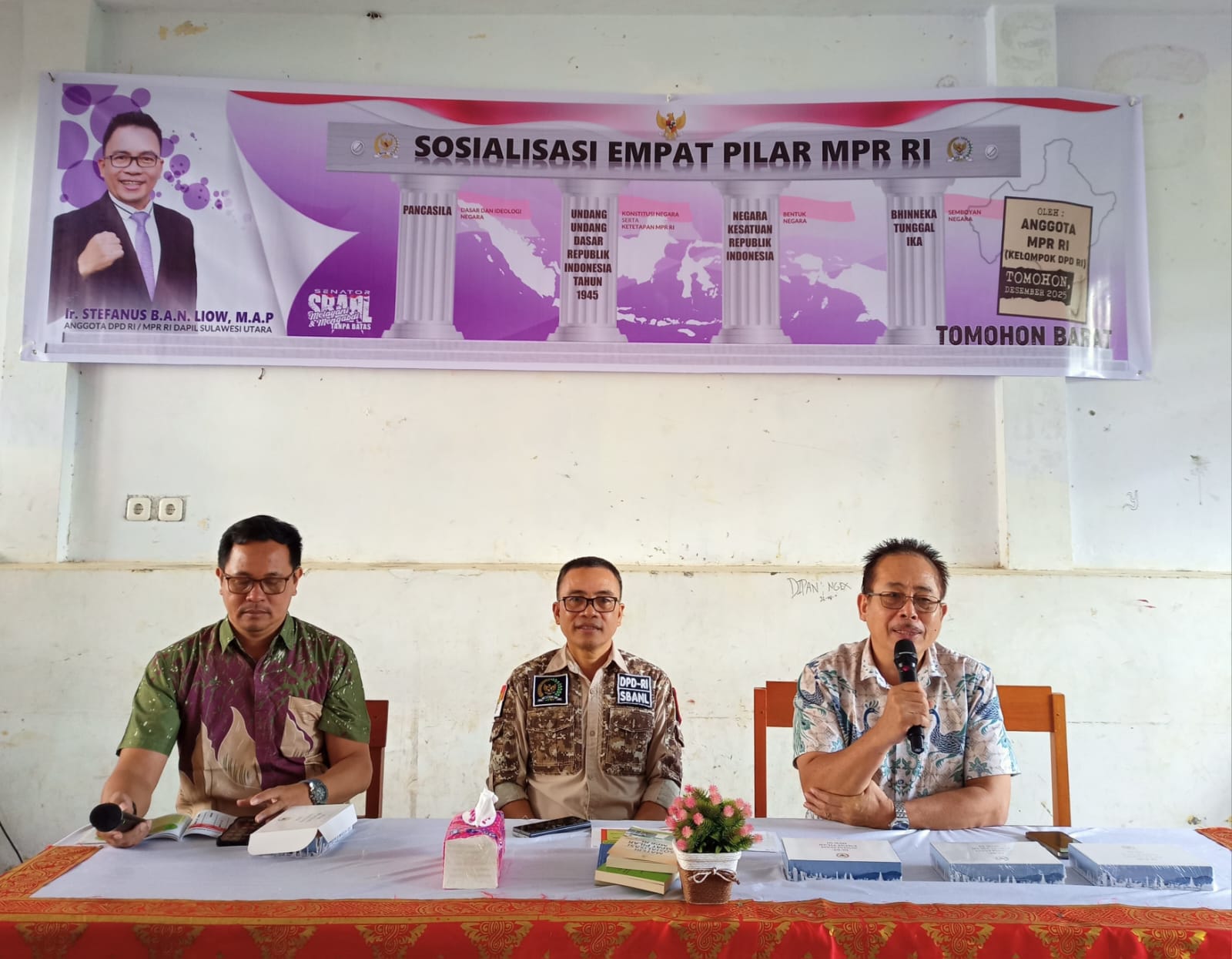Pilarportal.com,TOMOHON – Anggota DPD RI Ir. Stefanus B.A.N Liow, MAP menggelar Sosialisasi Empat Pilar MPR RI di SMK Negeri Tomohon yang berkedudukan di Kelurahan Woloan Dua Kecamatan Tomohon Barat Kota Tomohon, Kamis (11/12/2025).
