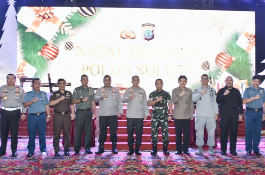 Hadir dalam Ibadah perayaan Natal bersama Polda Sulut tersebut Kasdam XIII/Merdeka Brigjen TNI Mohammad Lutfie Beta S.Sos, M.Si, Wakapolda Sulut Brigjen Pol Jhonny Edison Isir, S.I.K., M.T.C.P, Kabinda Sulut Brigjen TNI Raymond Marojahan, Danlantamal VIII/Manado Laksma TNI Nouldy Jan Tangka, Kasrem 131/Santiago Kolonel Inf Hengky Yudha Setiawan, Kadispotdirga Kolonel Pas Paulus Purwadi, S.Pd, dan Aslog Danguskamla Koarmada II Kolonel Laut (T) Haris Purnomo. (*/chris)