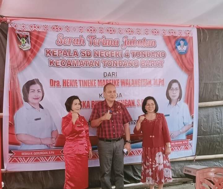Pilarportal.com,Minahasa – Pemerintah Kabupaten Minahasa melalui Dinas Pendidikan Dan Kebudayaan Daerah melakukan serah terima jabatan Kepala Sekolah SDN 4 Tondano dari Henie T.M Walangitan. M.Pd kepada Seska Ruth Gerungan S.Pd, bertempat di SDN 4 Tondano, Jumat, (12/05/2023).