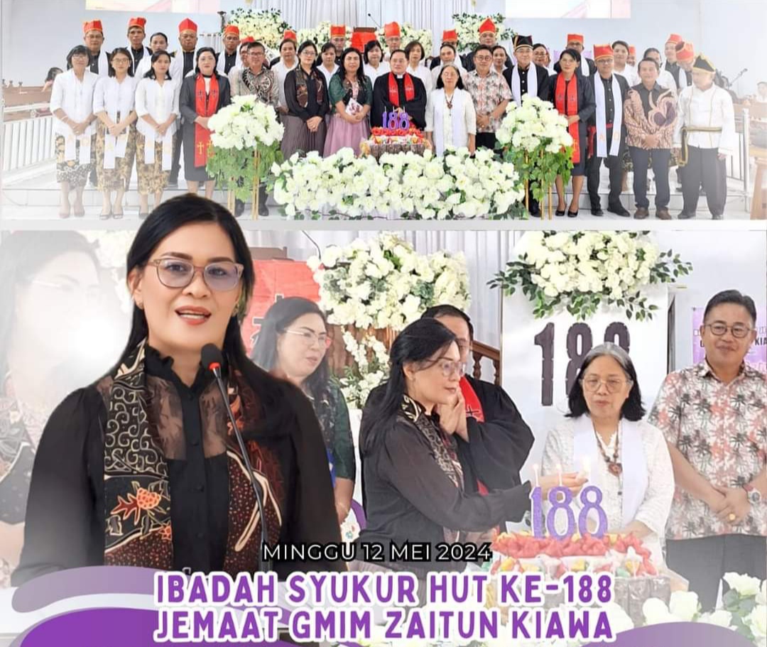 “Berkenan dengan itu, atas nama Pemerintah Kabupaten Minahasa, mewakili Bupati Minahasa, Dr. Jemmy Stani Kumendong, M.Si bersama keluarga mengucapkan selamat hari ulang tahun Ke-188 Jemaat GMIM Zaitun Kiawa,” pungkasnya