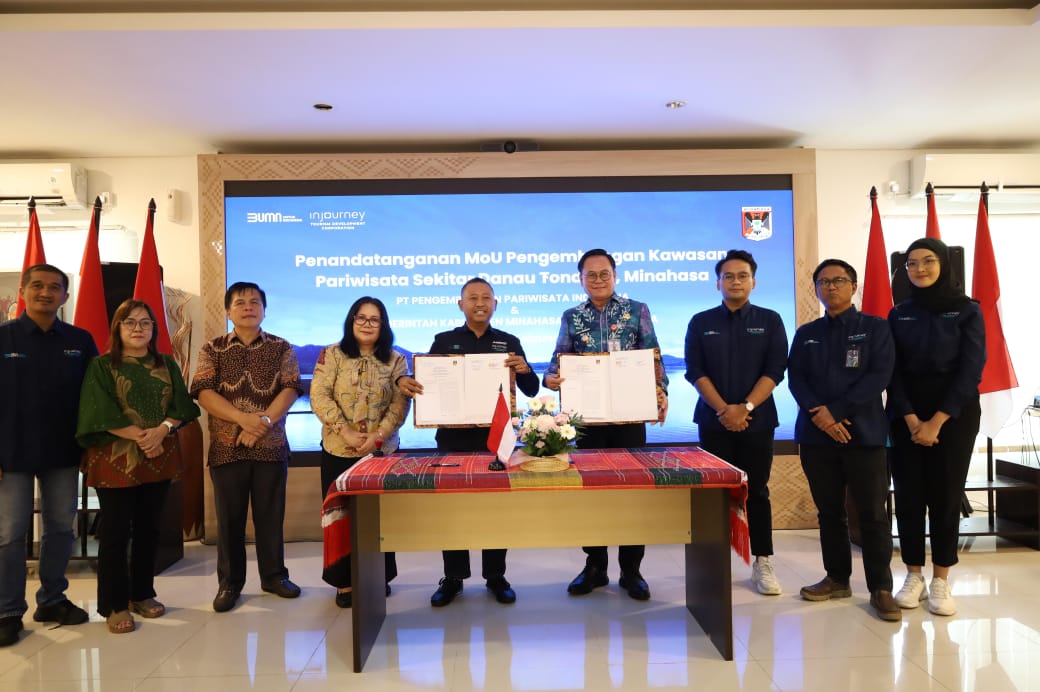 Pilarportal.com, Minahasa – Penjabat (Pj) Bupati Minahasa, Dr. Noudy R. P. Tendean, S.IP, M.SI, melakukan penandatangan MOU Pengembangan Kawasan Pariwisata Sekitar Danau Tondano antara Pemkab Minahasa dengan Injourney Tourism Development Cooperation (ITDC), bertempat di ITDC Office Mandalika Nusa Tenggara Barat, Rabu (12/2/2025) kemarin.